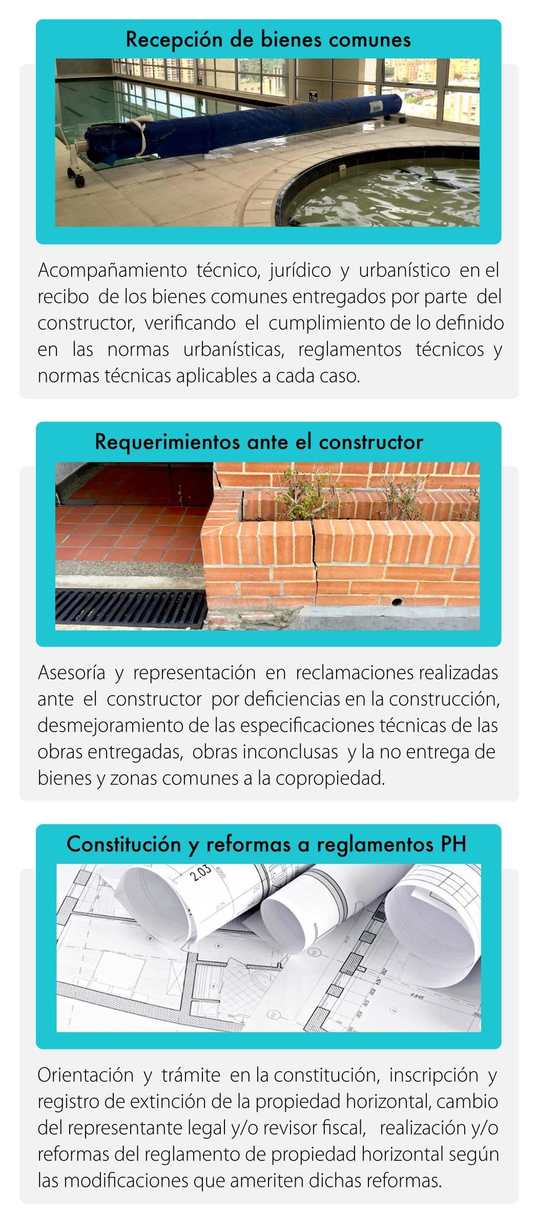 - Elaboración, trámite y reformas de reglamentos de propiedad horizontal